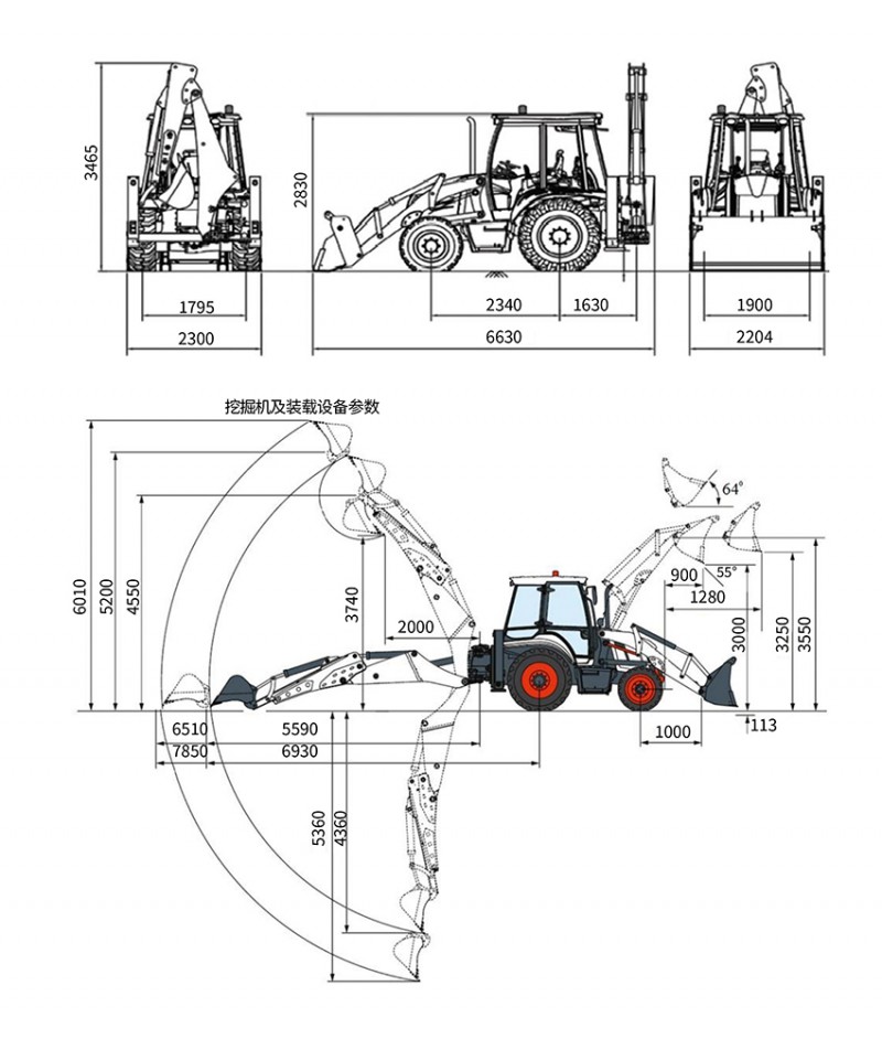 豪華3CX挖掘裝載機技術參數