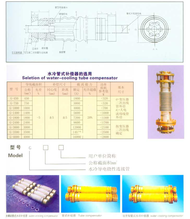用于礦熱爐(電石爐、鐵合金爐、工業硅爐、黃磷爐等)短網系統,既用于變壓器二次出線端與固定銅管的連接(補償器A型接頭并可用作電弧爐、鋼鐵爐補償器),也用于固定銅管與爐內可動銅管(連接銅瓦)之間的連接一水冷電纜。其中補償器可補償安裝誤差,熱脹冷縮和吸收短網的電磁力引起的振動